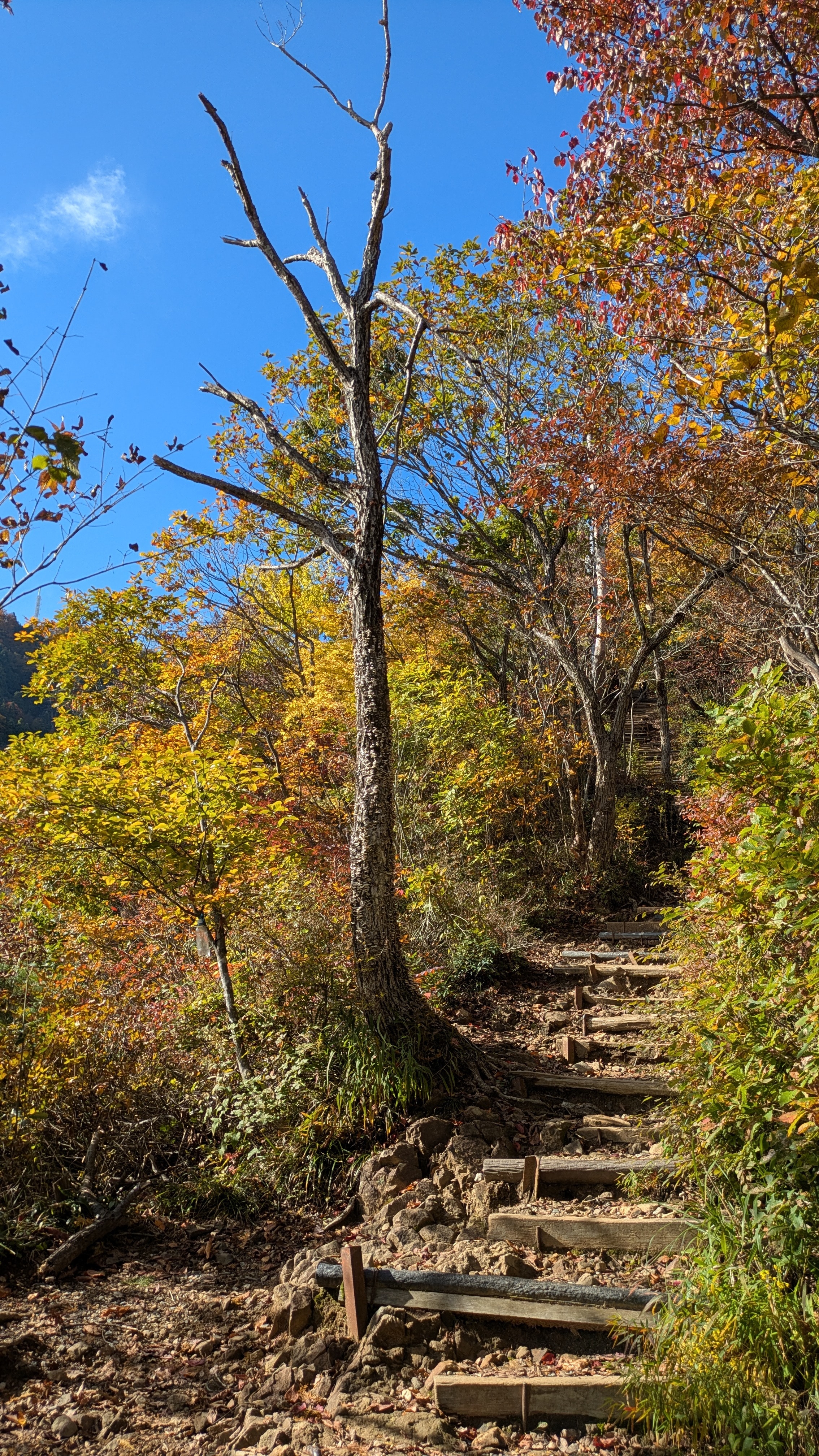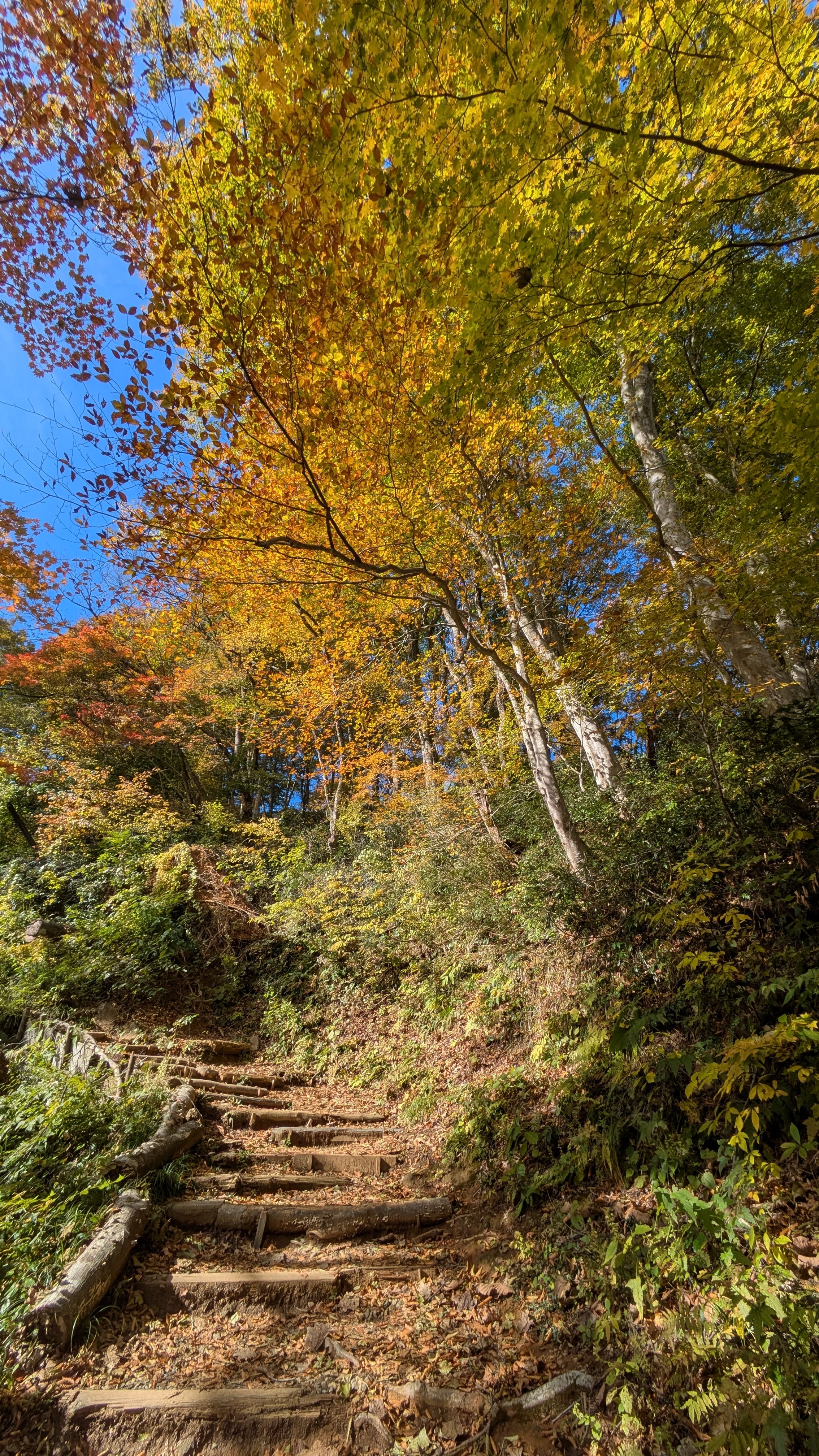 この日は快晴。色づいた葉っぱが青い空に映えますね。